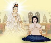 到了道場開放時間,她便迫不及待地依址前往,並當場報名禪修課。第一堂課後,隔天是週六,她又去佛堂,並告訴東湖觀音佛堂負責人覺妙心蓮,她將要回彰化參加家人為她安排的法會,心蓮一聽,便說要恭請觀世音菩薩法身為她加持。
